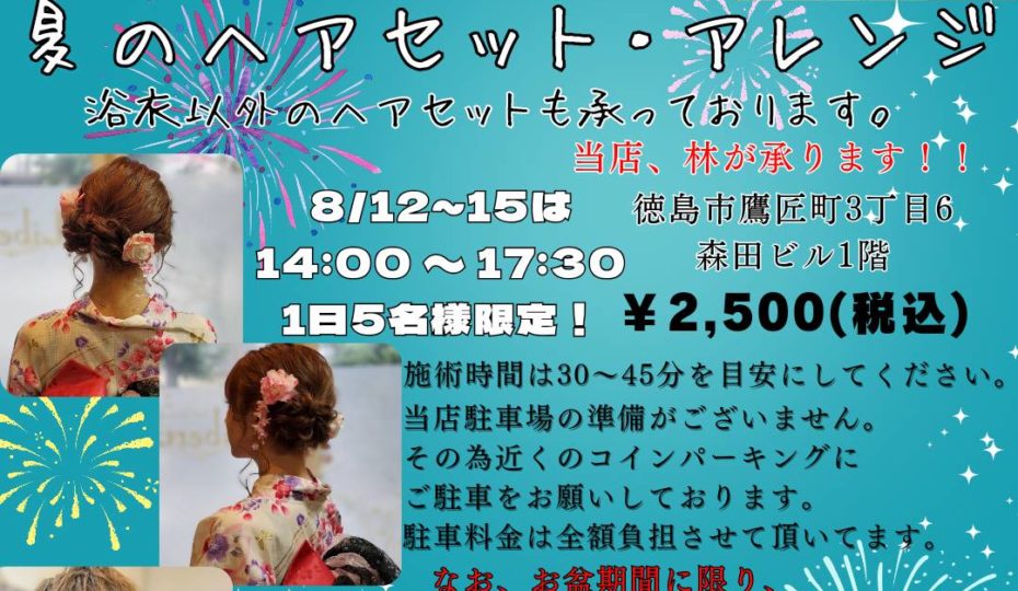 〜お盆期間の夏のヘアセットのご予約案内〜